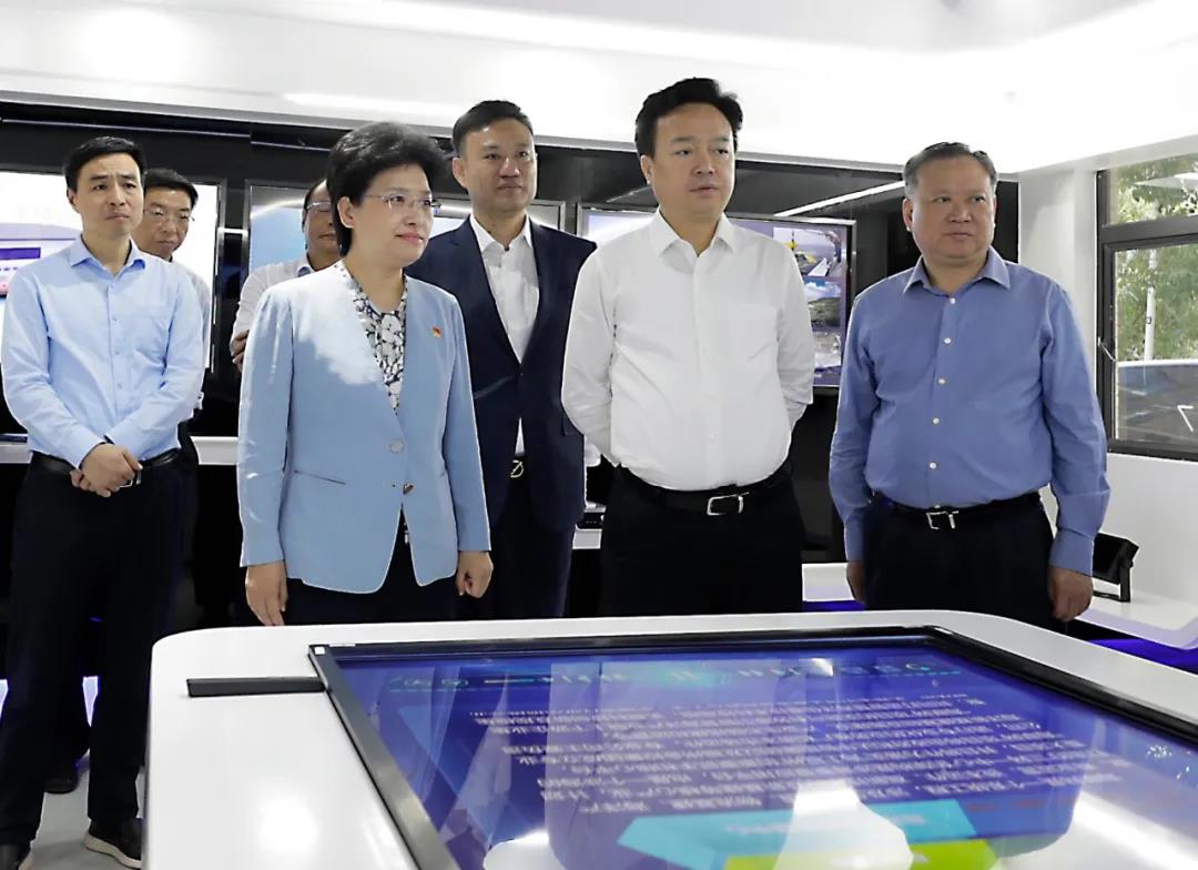 调研组一行还详细了解了九位树在智慧城市、经济运行平台等数字新基建领域的运营案例,并现场观摩了九位树[敏感词]研制、全国首台105寸可触摸智能大屏(21:9)的互动演示。