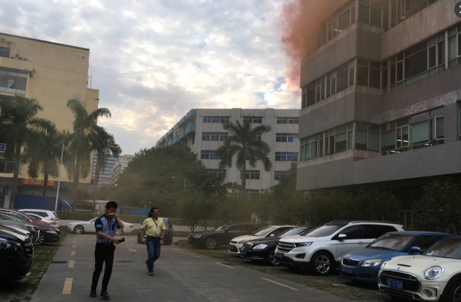 17:00整,大楼冒出浓烟,以此为信号,演练正式开始。