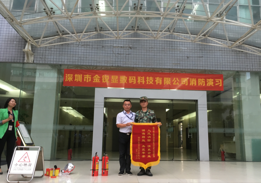 为感谢消防站官兵为社区安全作出的贡献,以及对本次消防演练活动的大力支持,王总代表九位树向消防站官兵们敬赠锦旗:“人民消防,情系企业,课传精益,共筑平安。”